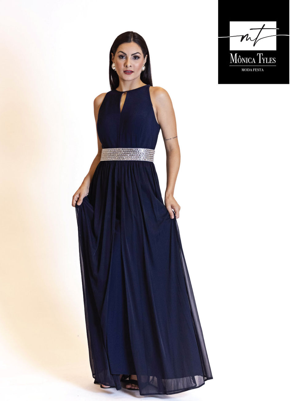 Vestido Longo Cintura Strass